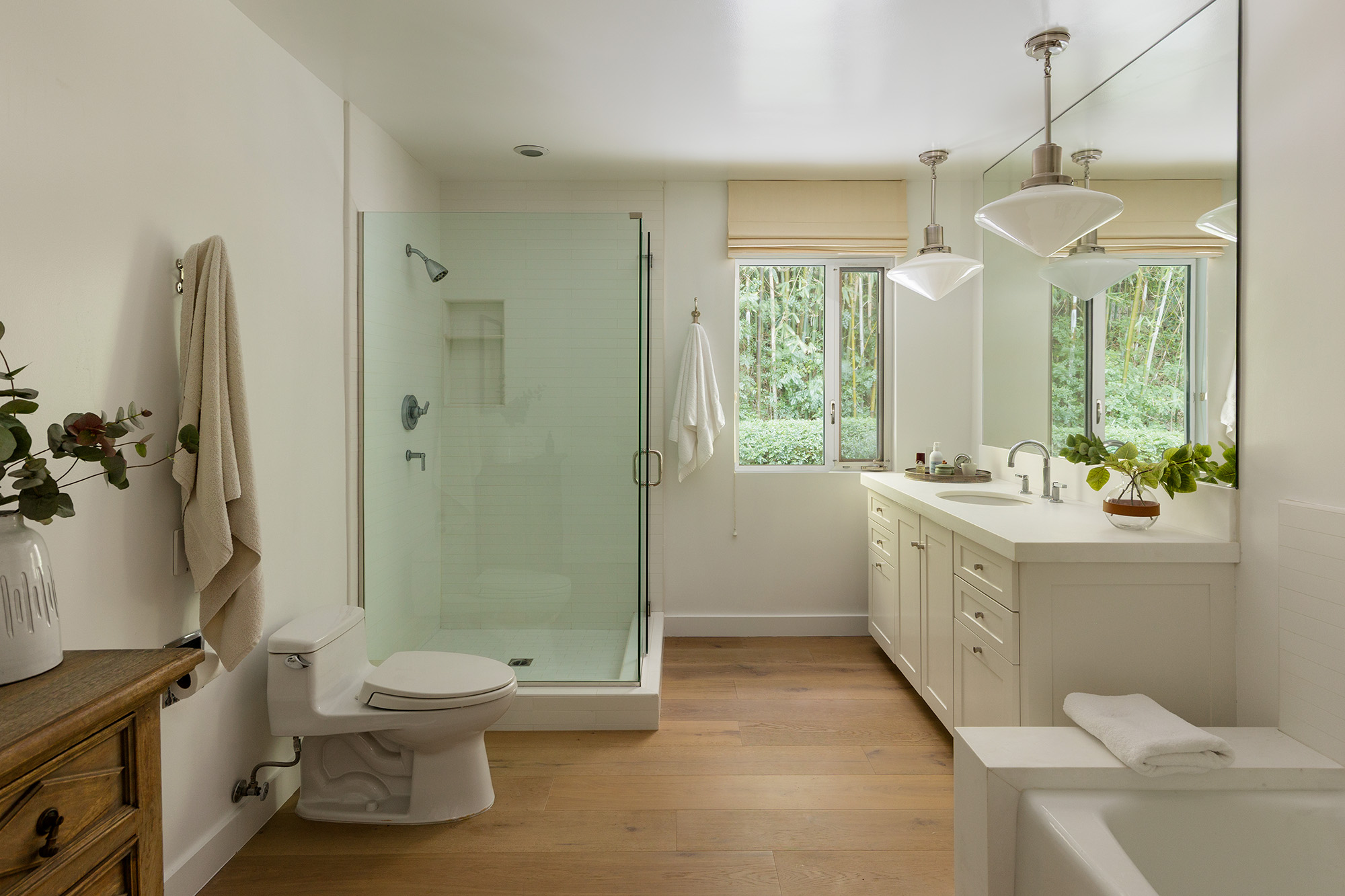 Additional features include a standing seam celadon green metal roof, wide plank light oak floors, updated security system, hillside drought tolerant landscaping, and Ann Sacks tiles and fixtures found in the baths and kitchen. An ADU probably can be constructed with access from the approximately 240’ along Stone Canyon Rd. Extensive upgrades undertaken in 2010-2011 include new electrical, ductwork, plumbing, HVAC, kitchen and baths, and metal roof.